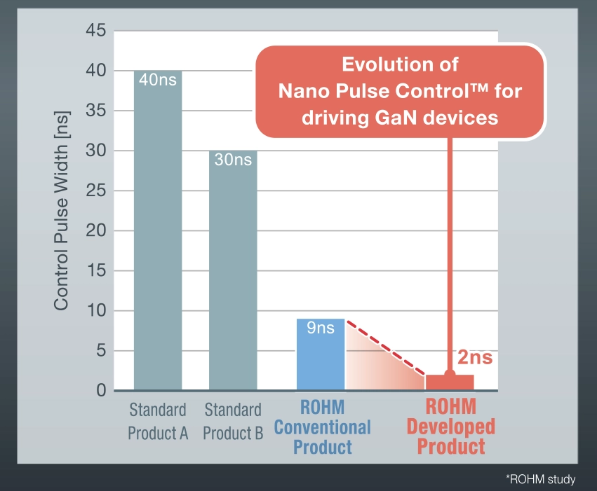 By leveraging GaN, ROHM has succeeded in reducing control pulse width to as little as 2ns. Through ongoing refinement of device structures and optimization of packaging technologies, ROHM will continue to unlock new possibilities--enabling compatibility with an even broader range of power conversion topologies.