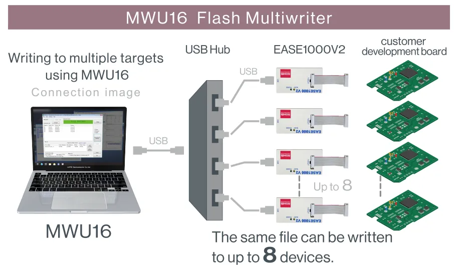- Supports writing program files to multiple (up to 8) target Flash memory of the same type.