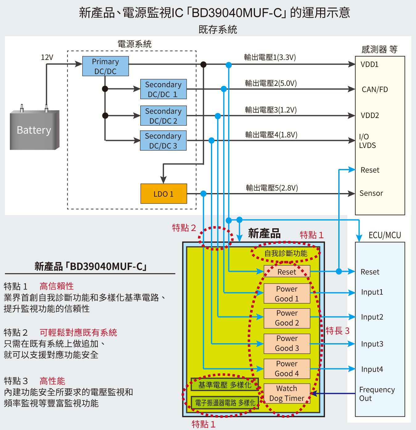 3. 內建車電電源和ECU所需的豐富監測功能
