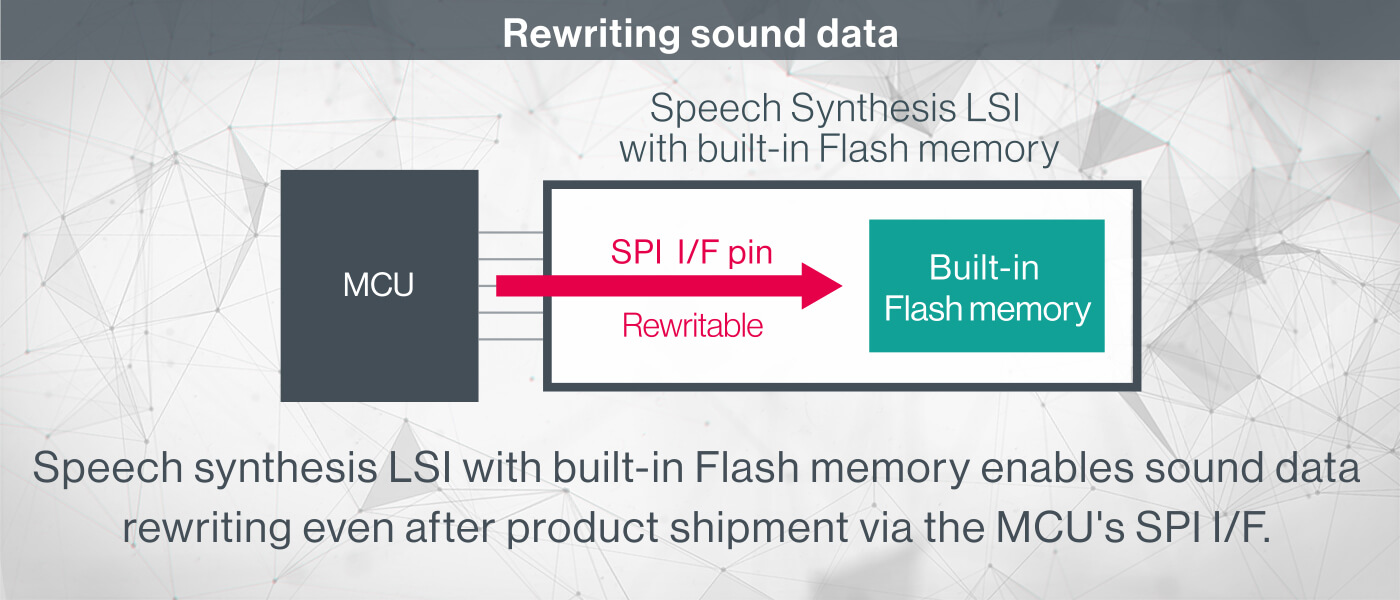 For long playback speech synthesis LSIs, we have a lineup of products equipped with flash memory and products equipped with P2ROM that can be used with short TAT.