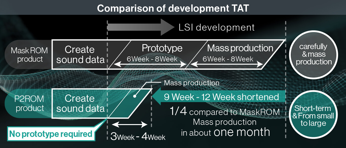 P2ROM enables one-time writing in the customer’s environment, making it possible to verify the sound quality on the spot without taking additional time.