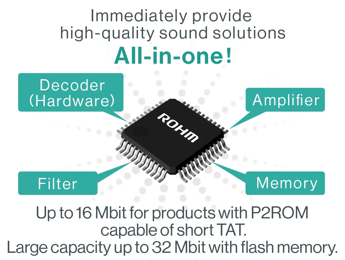 The "ML228xx" and "ML227xx" integrate LAPIS TECHNOLOGY™’s proprietary P2ROM memory technology for storing sound data.