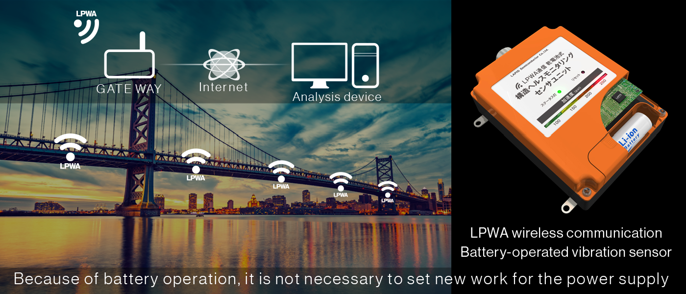 LPWA wireless is effective in the condition of the expensive construction for a new power or in the long distance to correct sensor data like the bridge and the tunnel.