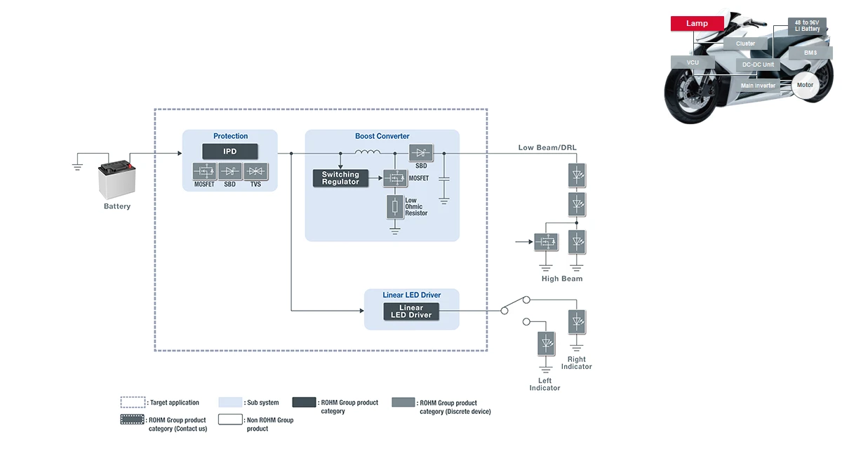 對於二輪車而言,其燈具不僅要具備基礎的照明功能,還需要滿足不同國家的法律法規要求,比如光量和照射範圍控制、頭燈和其他車燈的整合控制等。
