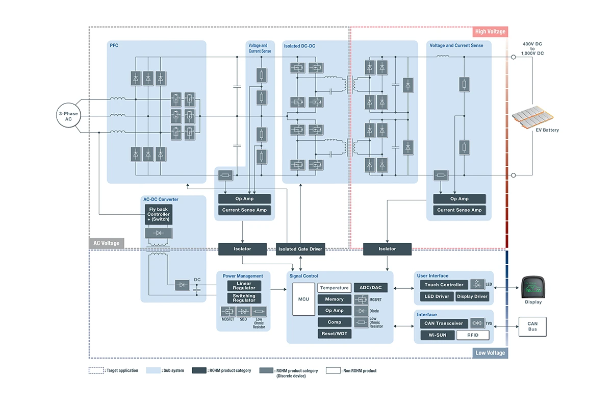 羅姆除了以SiC元件為主的各種功率半導體和驅動IC構成的電源解決方案外,還透過分流電阻和電流檢測放大器提供高精度電流檢測,助力進一步提高效率。